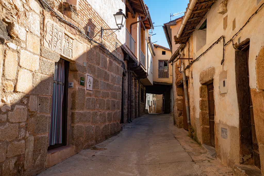 Su trama urbana nacida en un cruce de caminos, conserva magníficos ejemplos de la arquitectura tradicional serrana, los balcones y sus escudos en granito.